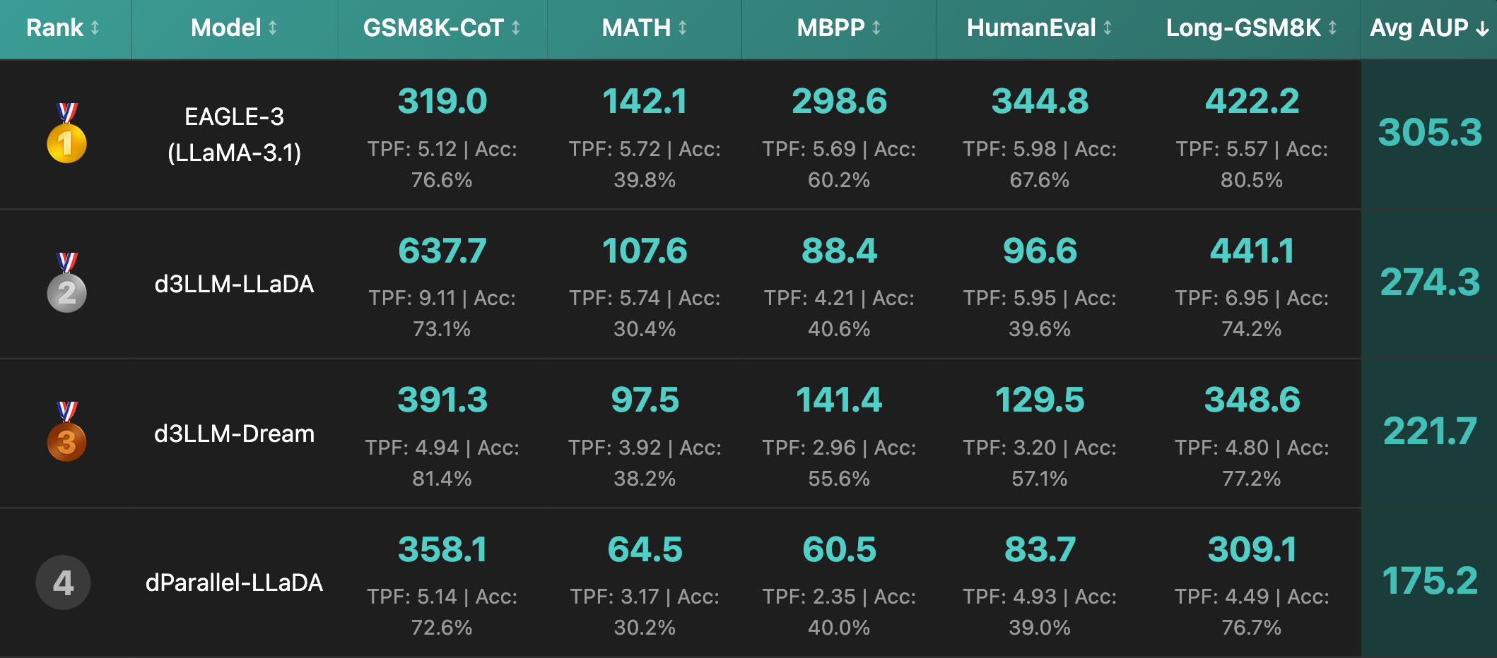 AUP: when Accuracy Meets Parallelism in Diffusion Language ModelsDecember 10, 2025Yu-Yang Qian, Junda Su, Lanxiang Hu, Peiyuan Zhang, Zhijie Deng, Peng Zhao, Hao Zhang